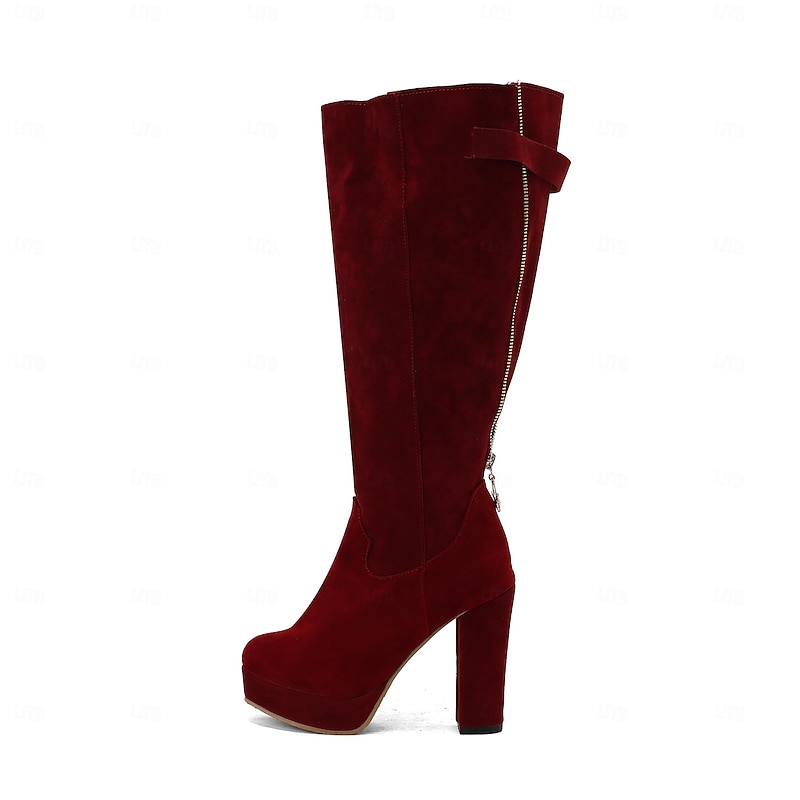 Women's Suede Knee High Platform Boots with Adjustable Wide Zipper Calf, Block Heel Fashion Boots for Urban Streetwear 23