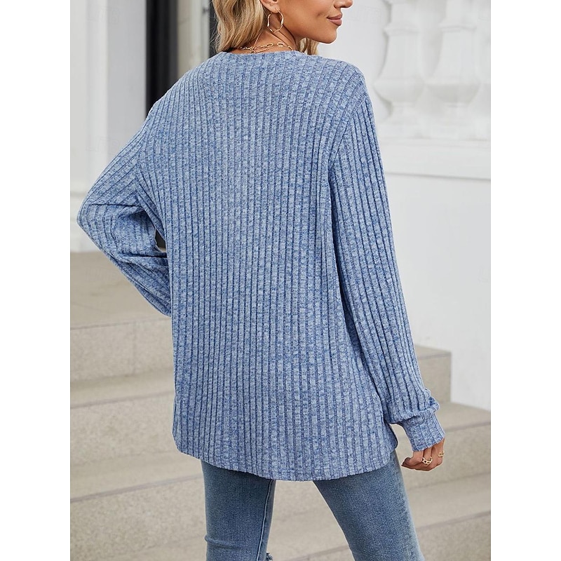 HOT ! Women's Sweater Stylish Casual Solid Color Ribbed V Neck Buttons Long Sleeve Regular Tops Knit Daily Pink Blue Spring Fall
