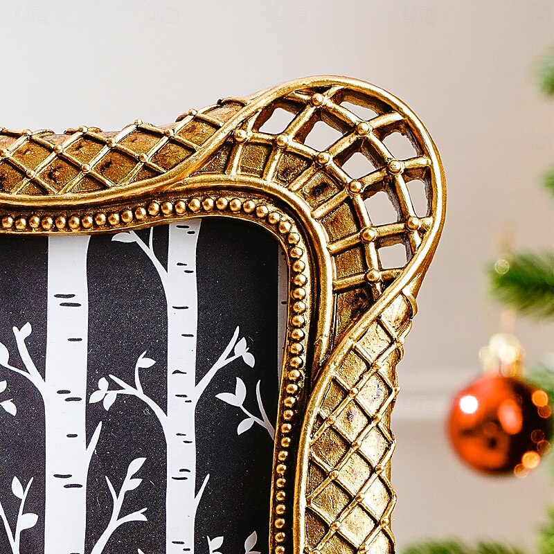 1PC European Golden Checkered Double-arc Shaped Decorative Photo Frame Resin Material Desktop Photo Display Frame Suitable for Photo Display Home Decoration Photography Shooting Props 9