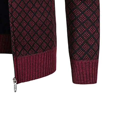 JEKE-DG Men's Slim Fit Full Zipper Sweater Stand Collar Knit Cardigan Sweater Long Sleeve Cable Casual Sweaters 4