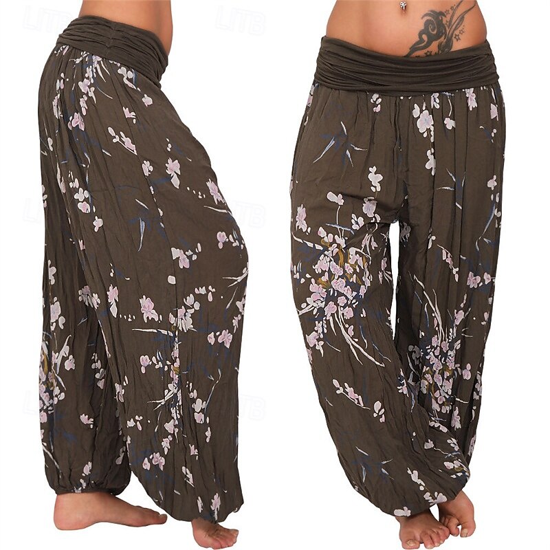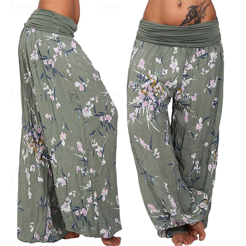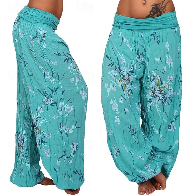 More information about Women's Pants Trousers Harem Pants Palazzo Pants Fashion Boho Full Length Mid Waist Print Elastic Waist Comfy Comfortable Micro-elastic Street Daily Wear Going out White Yellow Light Green Pink