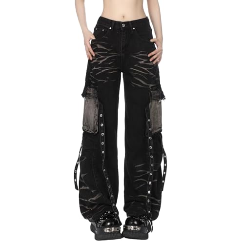 More information about Baggy Cargo Pants Wide Leg Denim Cargo Jeans Y2k Hip Hop Oversized Jean Vintage Streetwear Clothes with Multi Pockets