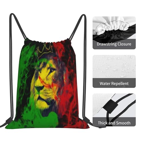 Jamaican Rasta Reggae Judah Lion Bags Backpack Drawstring Bag Gym Bag Travel Hiking Beach 16X14 In 6