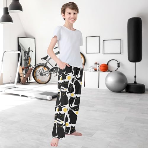 Boy's Lounge Pants Black Cat Yellow Eyes Ball Kids Jogger Pants Elastic Waist Long Bottoms with Pockets 6-14 Years 4