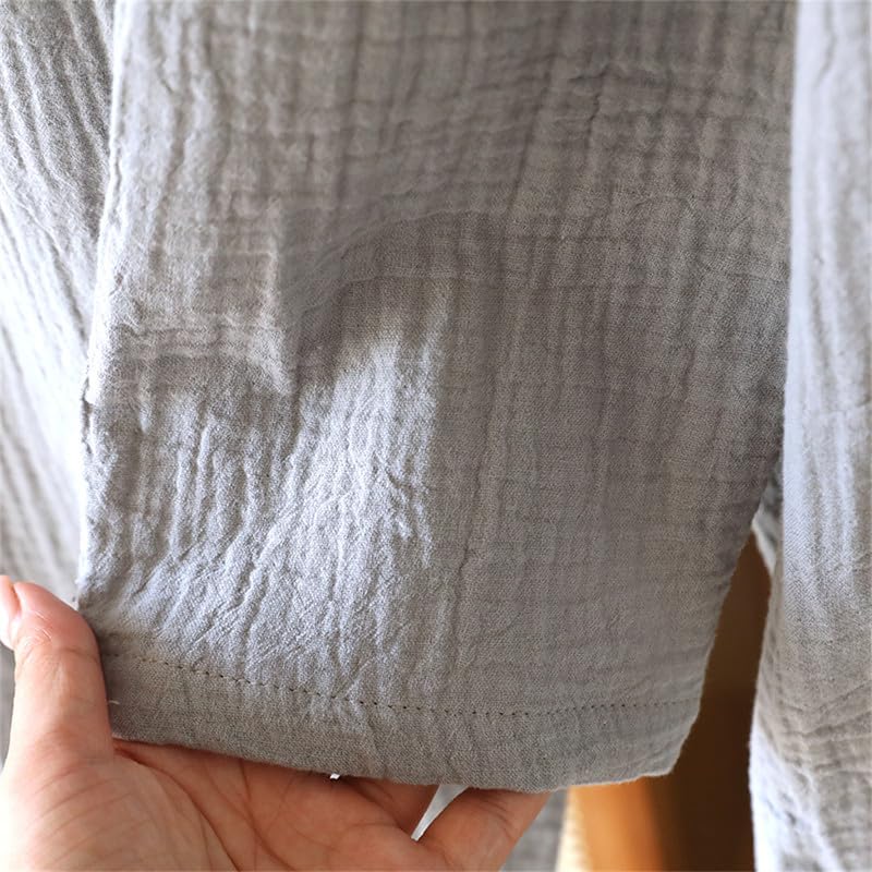 Shanghai Story Men's Cotton Gauze Pajama Set Lightweight Long Sleeve Sleepwear Spring Fall Lounge Set 6