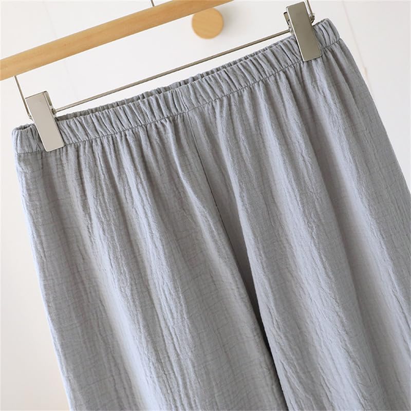 • Made from breathable cotton gauze fabric, this pajama set is lightweight, soft, and gentle on the skin, perfect for year-round comfort.