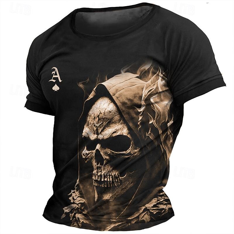 More information about Men's Graphic Skulls T Shirt Tee Top Short Sleeve T shirt 3D Print Crew Neck Shirt Daily Designer Retro Vintage Sports Outdoor Holiday Going out Black Navy Blue Brown Spring & Summer Clothing Apparel