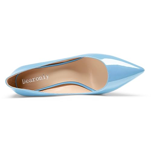 DearOnly Womens Patent Leather Slip-on Pumps Close Pointed Toe Mid Block Heel Office Casual Shoes 3.2 Inches Heels 5