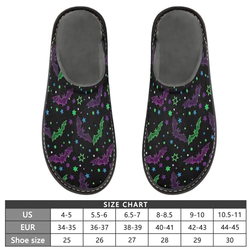 ODAWA Neon Bats Purple Green House Slippers for Woman Men, Winter House Slippers with Memory Foam Anti-Skid Sole Size 4-5 5