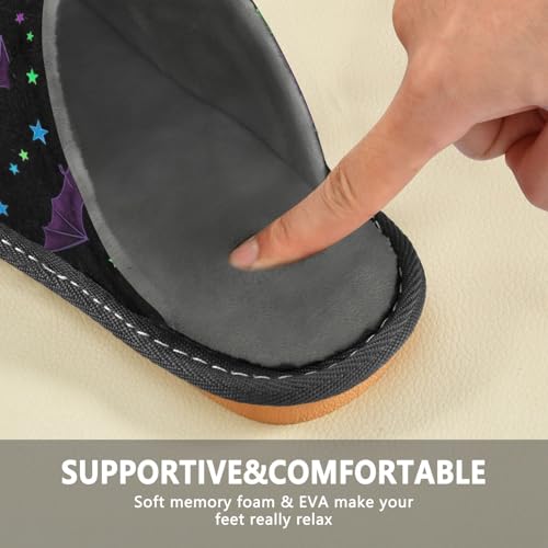 ODAWA Neon Bats Purple Green House Slippers for Woman Men, Winter House Slippers with Memory Foam Anti-Skid Sole Size 4-5 7