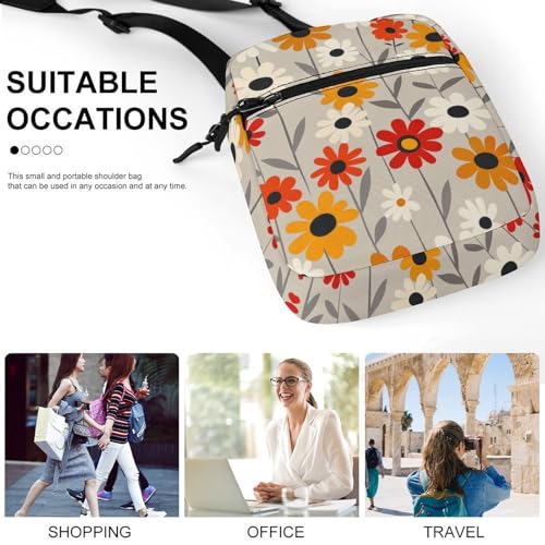 Personalized Small Crossbody Bag Water Resistant Messenger Bags Mini Retro Flower Design Printing SlingBag For Men Women 7