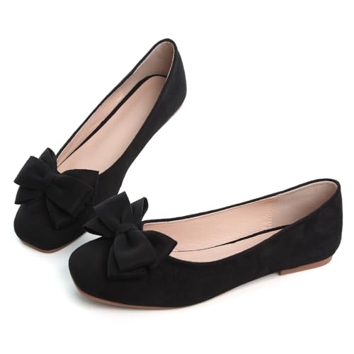 LUXINYU Women Mary Jane Shoes Bowknot Dressy Square Toe Suede Upper Slip on Ballet Flats Comfortable Moccasins Work Flats Daily Walking Shoes 6