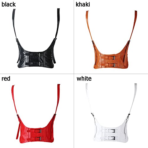 Vintage Gothic Faux Leather Underbust Corset Crop Top - Solid Color Adjustable Vest Waist Belt with Double Buckle Cincher 4
