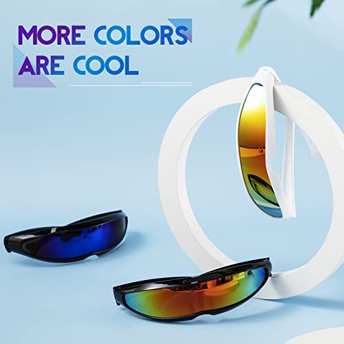 • Sufficient Quantity: you will receive 8 pieces futuristic sunglasses in 8 different bright colors, white frame with blue lens, colorful lens, silver lens, yellow lens, black frame with blue lens, color lens, silver lens, yellow lens, providing more choices for you