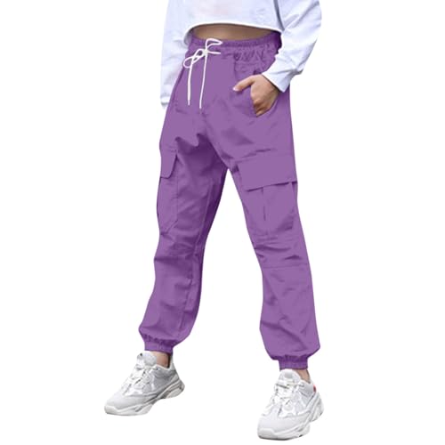 HOT ! Boys Girls Plain Cargo Pants Kids High Waisted Casual Athletic Trousers Drawstring Joggers with Pockets 3-12 Years