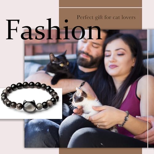 • Material and Design: each cat obsidian bracelet is crafted from quality obsidian, a deeply significant and protective stone; With bead diameters of about 0.31 inch/8 mm, 1 bracelet features a delightful cat's head charm surrounded by 20 obsidian beads, and the other integrates 2 obsidian stones hinged on a cat's head; Each symbol representing wealth and wisdom in Chinese Feng Shui, creating bracelets that exudes prosperity and protective qualities