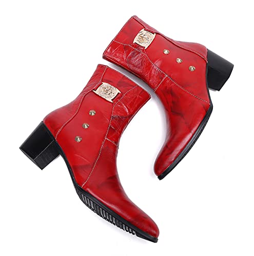 Santimon Mens Casual Western Chelsea Boots - Genuine Leather Mid Calf Cowboy Boots With Zipper for Party Disco Ballroom Wedding 7