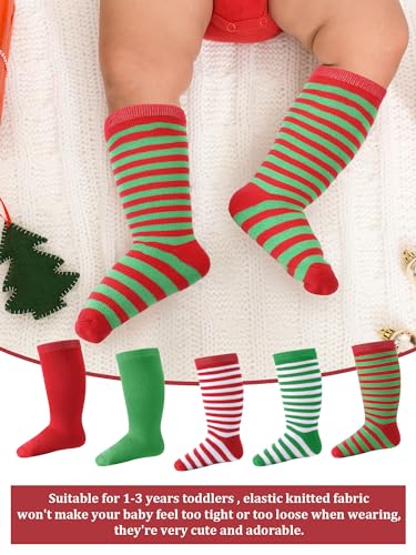 • Christmas Colors: the 5 pairs of tube socks are striped and in solid colors, including classic red and green, convenient for your baby to use or replace, which you can match different colors according to different Christmas costumes