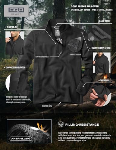 HOT ! CQR Men's Quarter Zip Utility Fleece Pullover, Outdoor Casual Thermal Sweater, Chest Zipper Pocket, Mock Neck Long Sleeve