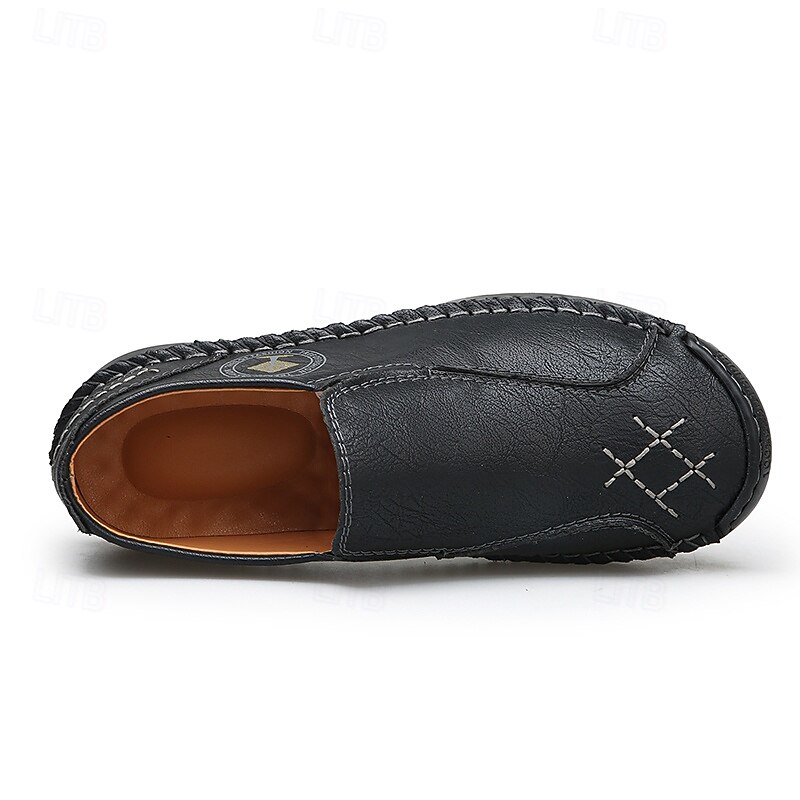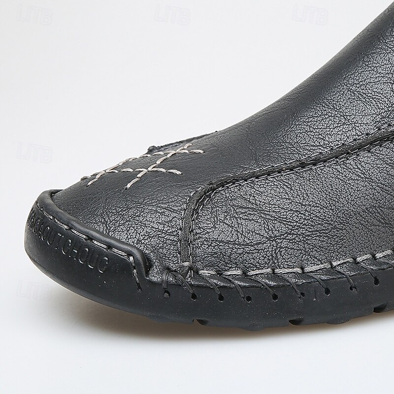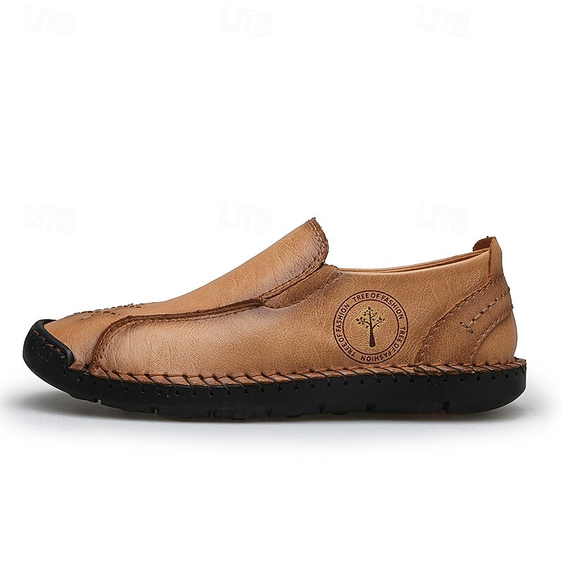 More information about Men's Beige Genuine Faux Leather Moccasins – Handmade Stitching Casual Slip-On Driving Shoes for Outdoor & Trave