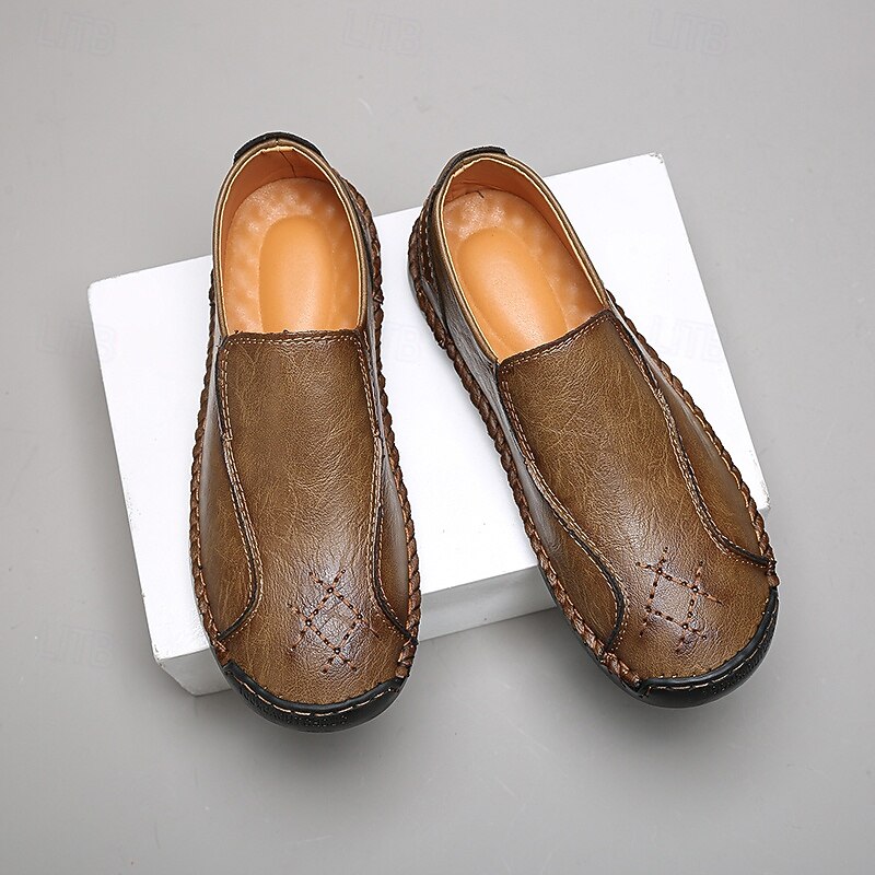 HOT ! Men's Beige Genuine Faux Leather Moccasins – Handmade Stitching Casual Slip-On Driving Shoes for Outdoor & Trave