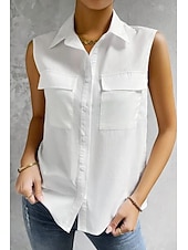 More information about Women's Shirt Button Up Blouse Plain Basic Modern Casual Sleeveless Shirt Collar Regular Tops Daily Going out Buttons Pocket Black White Light Blue Summer