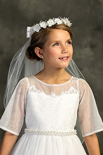 iGirlDress Girls First Communion White Floral and Pearls Wreath Crown Veil 1