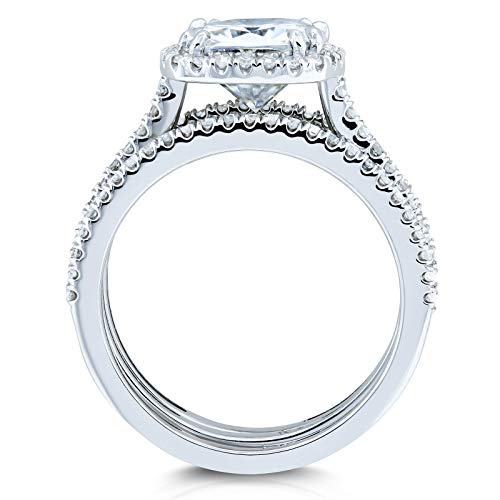 Kobelli Cushion Brilliant Moissanite Halo Bridal Wedding Rings Set 2 1/2 CTW 14k White Gold 6