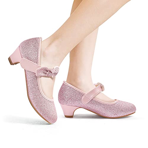 ADAMUMU Little Girls Princess Shoes Glittler Dress Shoes for Gilrs Toddler Girl Heels for Christmas Parties and Holiday Celebrations 6