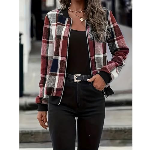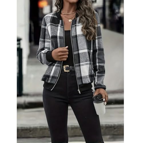 Shackets for Women 2025 Trendy Casual Zip Up Flannel Plaid Jackets Long Sleeve Lightweight Outwear Coat Fall Clothes 2