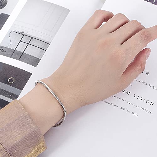 925 Sterling Silver 3mm Round Snake Chain Bracelet, Delicate Dainty Snake Bracelet, Sizes 6.3" to 9" Inch for Women & Men 5