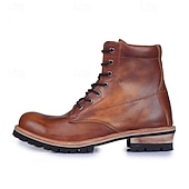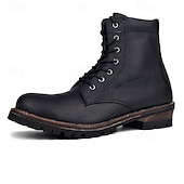 More information about Men's Genuine Leather Lace-Up Work Boots – Durable Outdoor Combat Hiking Boots with Rugged Sole for Construction and Adventure