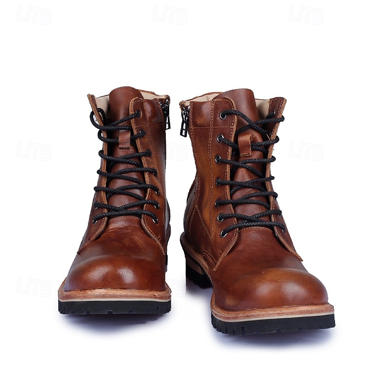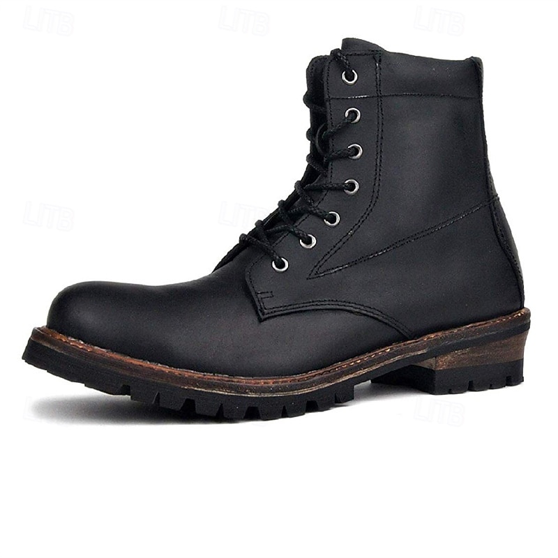 HOT ! Men's Genuine Leather Lace-Up Work Boots – Durable Outdoor Combat Hiking Boots with Rugged Sole for Construction and Adventure