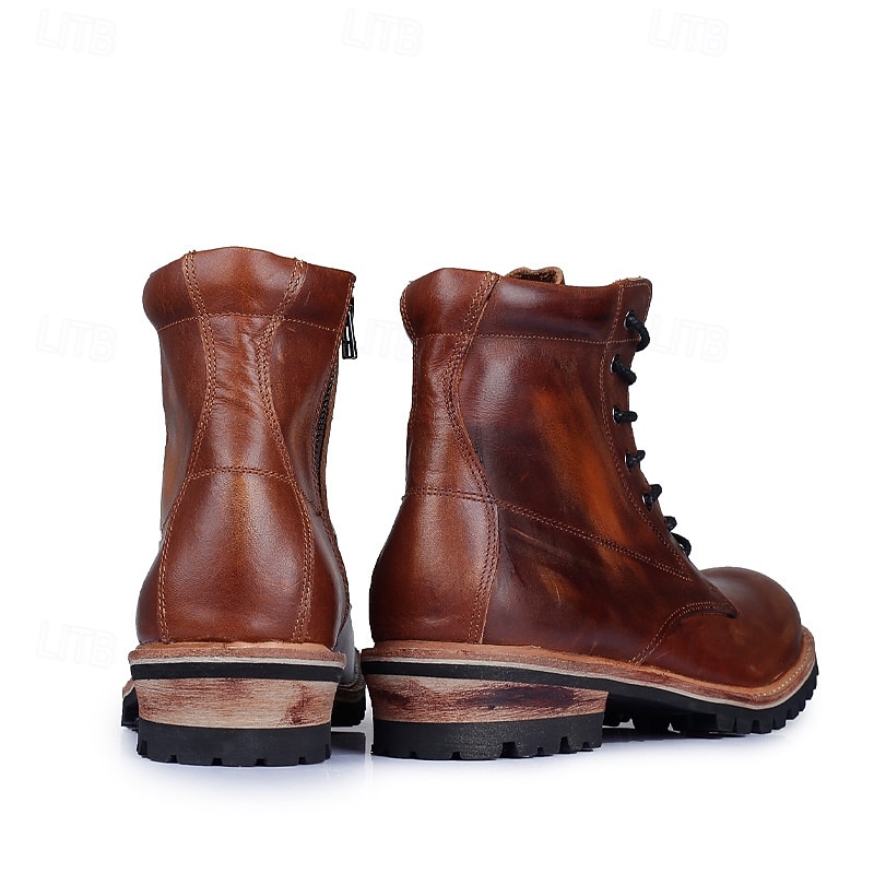 Men's Genuine Leather Lace-Up Work Boots – Durable Outdoor Combat Hiking Boots with Rugged Sole for Construction and Adventure 8