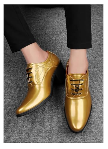Battle Men Men’s Shiny PU Pointed Toe Dress Shoes – High Heel Crocodile Pattern Oxford Footwear for Stage Performance & Parties 6