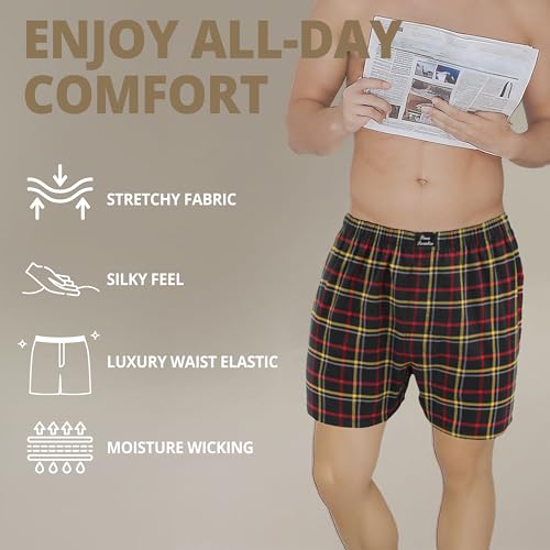 Men’s Woven Boxer Shorts 4-Pack – Ultra-Soft, Stretchy, Tagless, Wrinkle-Free Comfort Fit 4