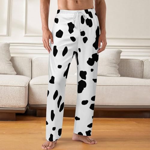 HOT ! Dalmatian Dog Print Mens Pajama Pants Wide Leg Sleep Drawstring Sleepwear Casual Loungewear