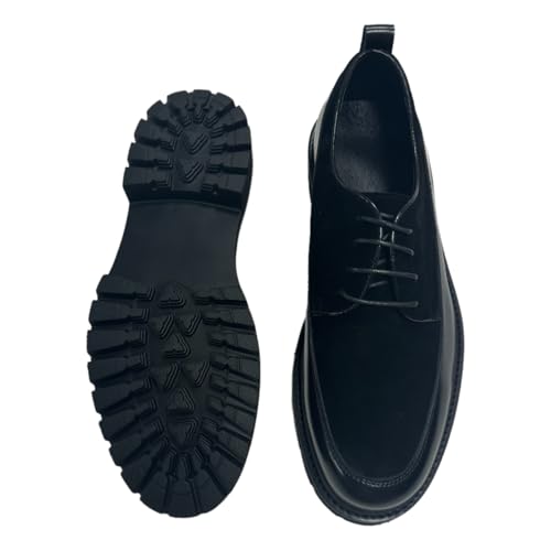 Men's Business Casual Oxford Shoes, Leather and Suede Upper, Chunky Platform Sole, Black 6