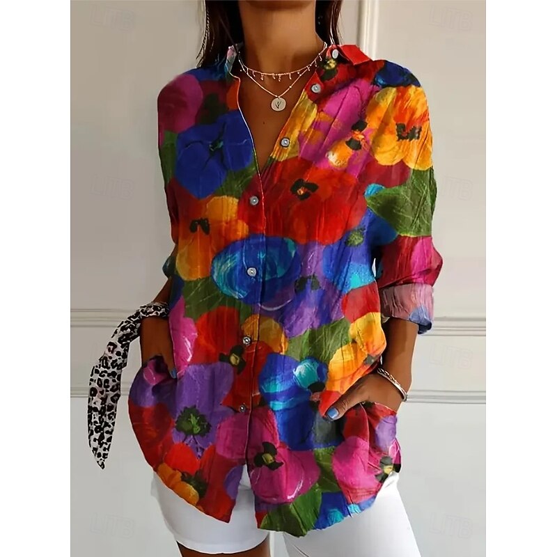 More information about Women's Shirt Button Down Tunic Shirt Collar Long Sleeve Floral Graphic Abstract Vintage Tropical Daily Regular Tops Work Daily Holiday s Print Red Blue Purple Orange Green Spring