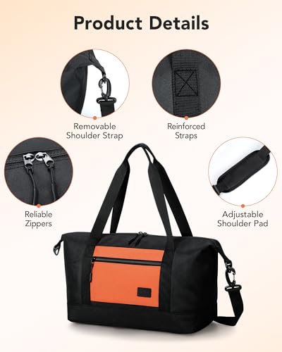 • [Convertible Design with Adjustable Shoulder Strap]--Carry it your way—this versatile weekender bag features an adjustable and removable shoulder strap for crossbody or over-the-shoulder wear. Comfortable grip handles make airport runs and daily errands a breeze.