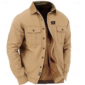 : Crafted from durable cotton with a plush fleece lining, this men's cargo shirt offers a thick, thermal experience perfect for cooler seasons. It combines a robust exterior with a soft interior for maximum comfort and warmth.