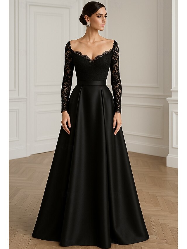 $144.99 - Black A-Line Evening Gown Elegant Formal Dress Formal Wedding Floor Length Long Sleeve V Neck Pocket Satin with Glitter 2025 2025. Shop for cheap A-Line Evening Dresses online? Buy at lightinthebox.com on sale today!