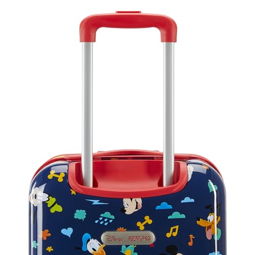 HOT ! American Tourister Mickey Mouse Carry-On Luggage - Airline Approved, Durable Hardshell with Micky, Donald Duck, Pluto & Goofy - Roll Confidentially with Spinner Wheels & Colorful Adjustable Handle