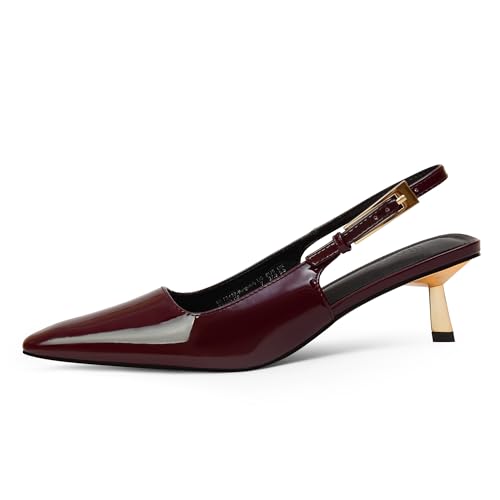 HOT ! iiimmu Kitten Heels for Women 2 inch Low Heel Pointed Closed Toe Slingback Pumps Dress Shoes, Faux Leather
