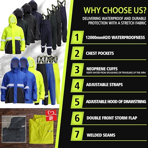 • 【High Visibility & Safe】- FWG rain gear have two rows of highly visible reflective strips on the top, sleeves and pant legs, they will keep you safe, even at night.