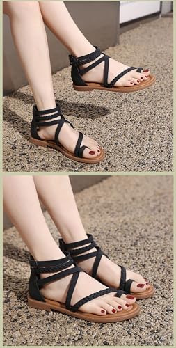 Women'S Roman Flat Sandals Comfortable Open Toe Gladiator Sandals Convenient Back Zip Sandals 5