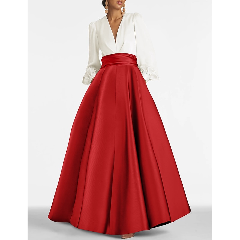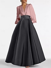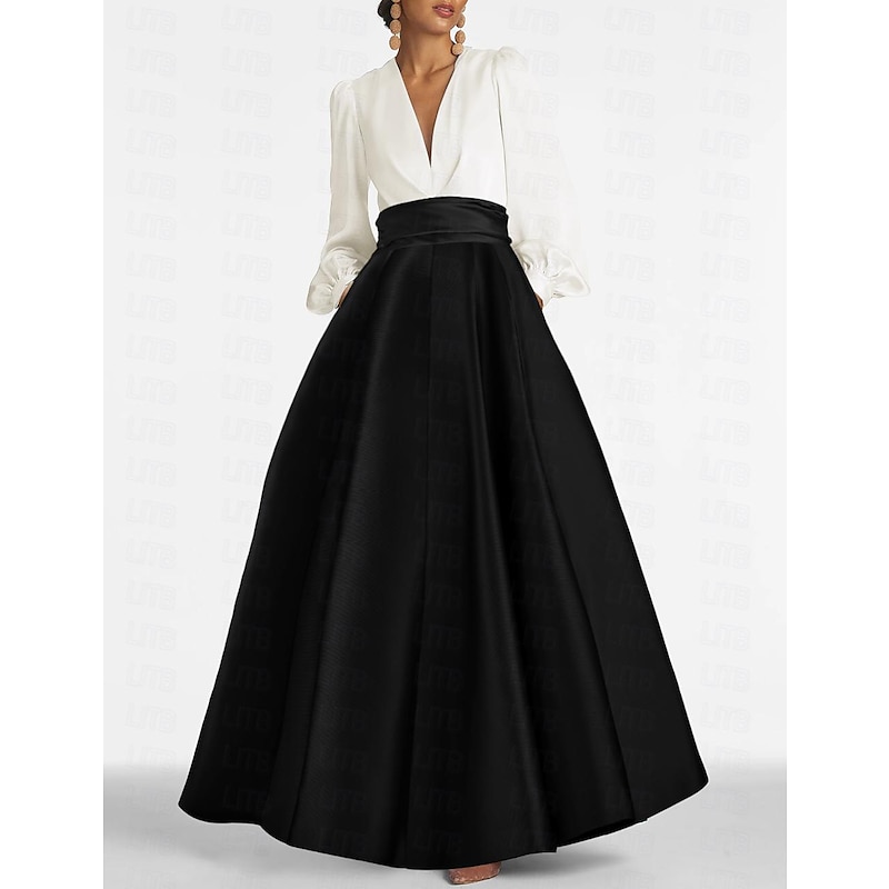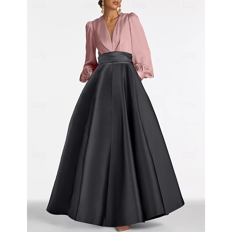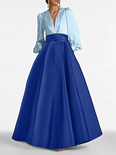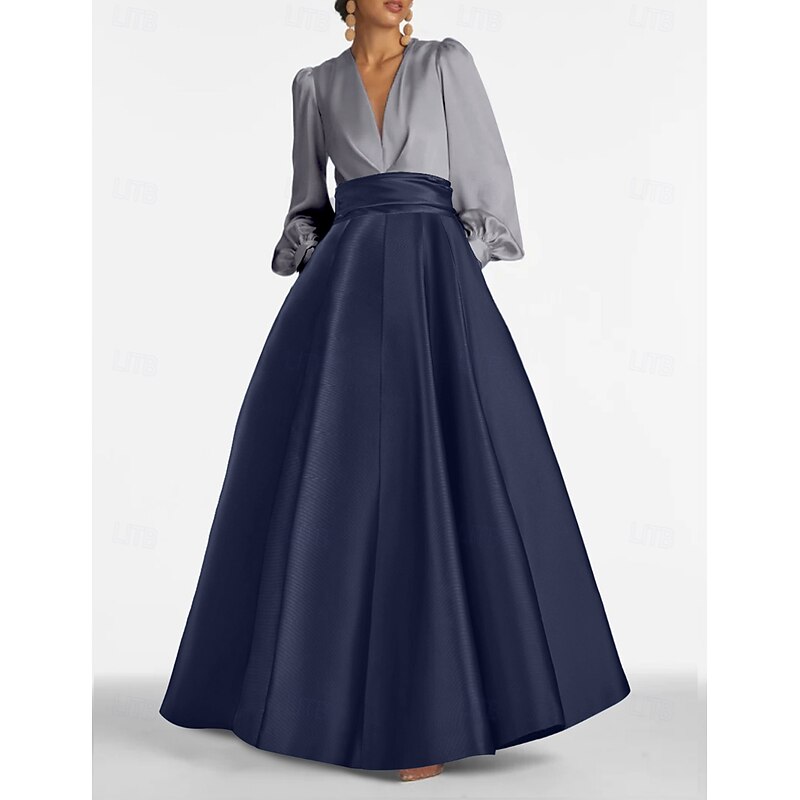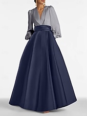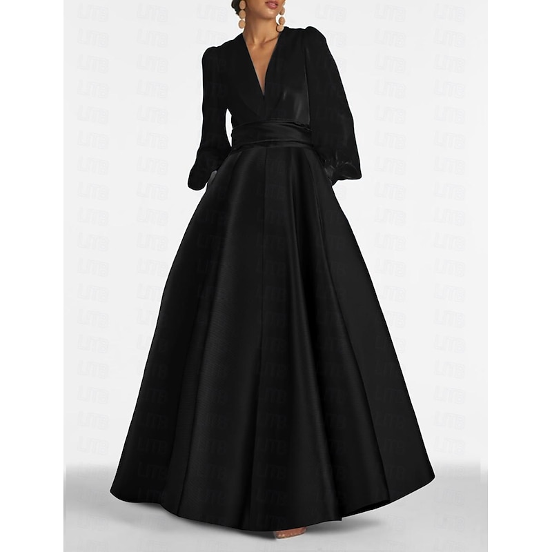 More information about A-Line Evening Gown Elegant Dress Formal Wedding Guest Floor Length Long Sleeve V Neck Satin with Ruched