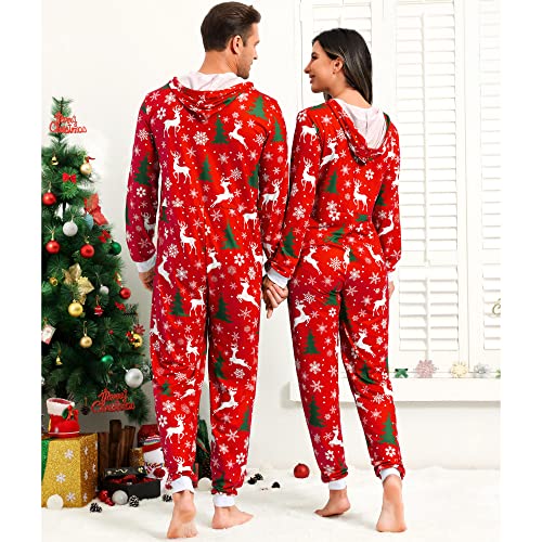 frawirshau Christmas Onesie Adult Christmas Pajamas for Family Onesies for Christmas Mens Onesie Pajamas Red 3XL 4
