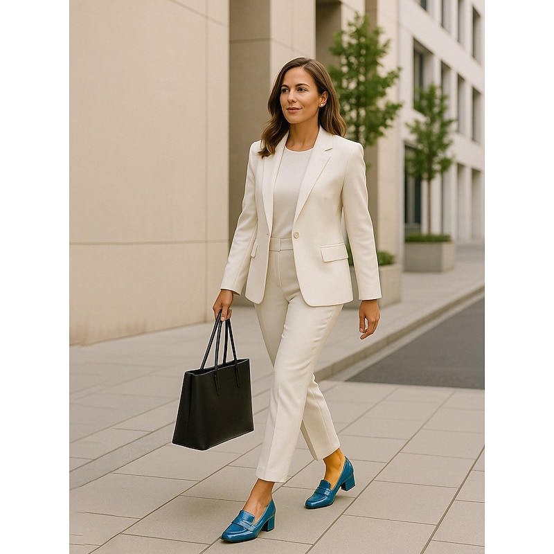 More information about Women's Blue Glossy Patent Leather Chunky Heel Loafers – Modern Square Toe Slip-On Work Shoes for Office Professionals