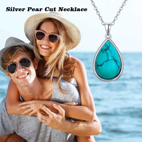 Genuine Turquoise Necklace for Women S925 Sterling Silver Pear Cut Turquoise Pendant Jewelry Gift for Mom Her 2